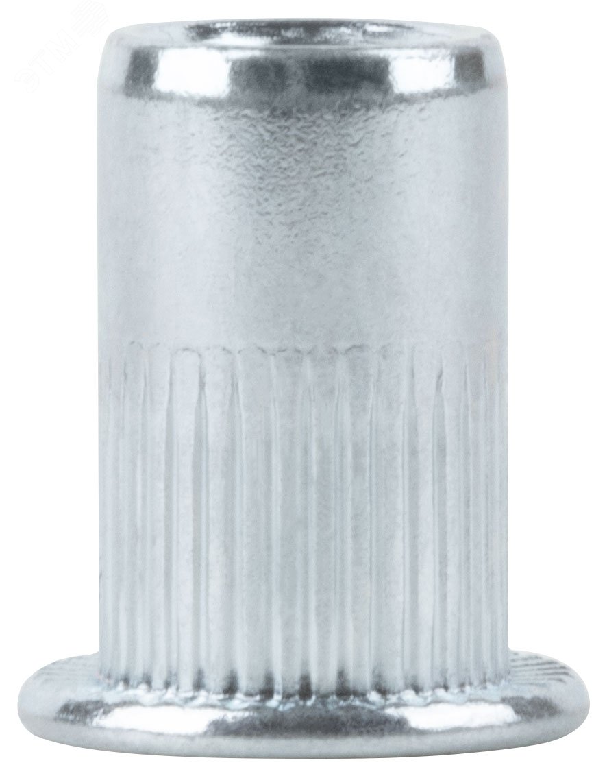 Стальная резьбовая заклепка с насечками и стандартным цилиндрическим бортиком, покрытие цинк. Применяются для скрепления тонколистовых материалов с получением в точке скрепления внутренней резьбы и последующего монтажа прикрепляемого материала. Упаковка — п/э пакет с подвесом.