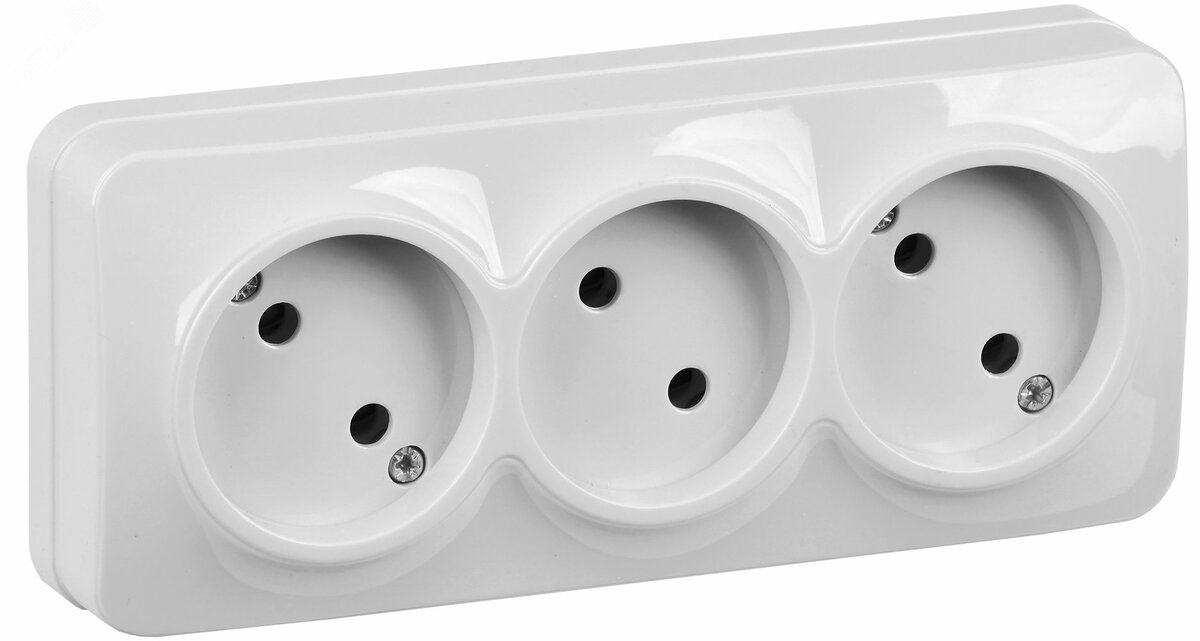 GLORY Розетка трехместная наружная без заземления белая купить в Казани