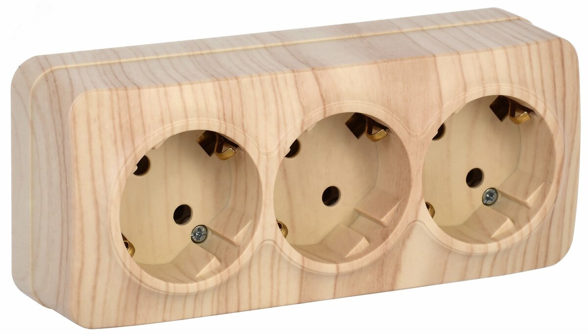 GLORY Розетка трехместная наружная с заземлением сосна купить в Казани