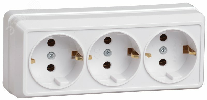 Розетка тройная с заземлением 16А белая купить в Казани