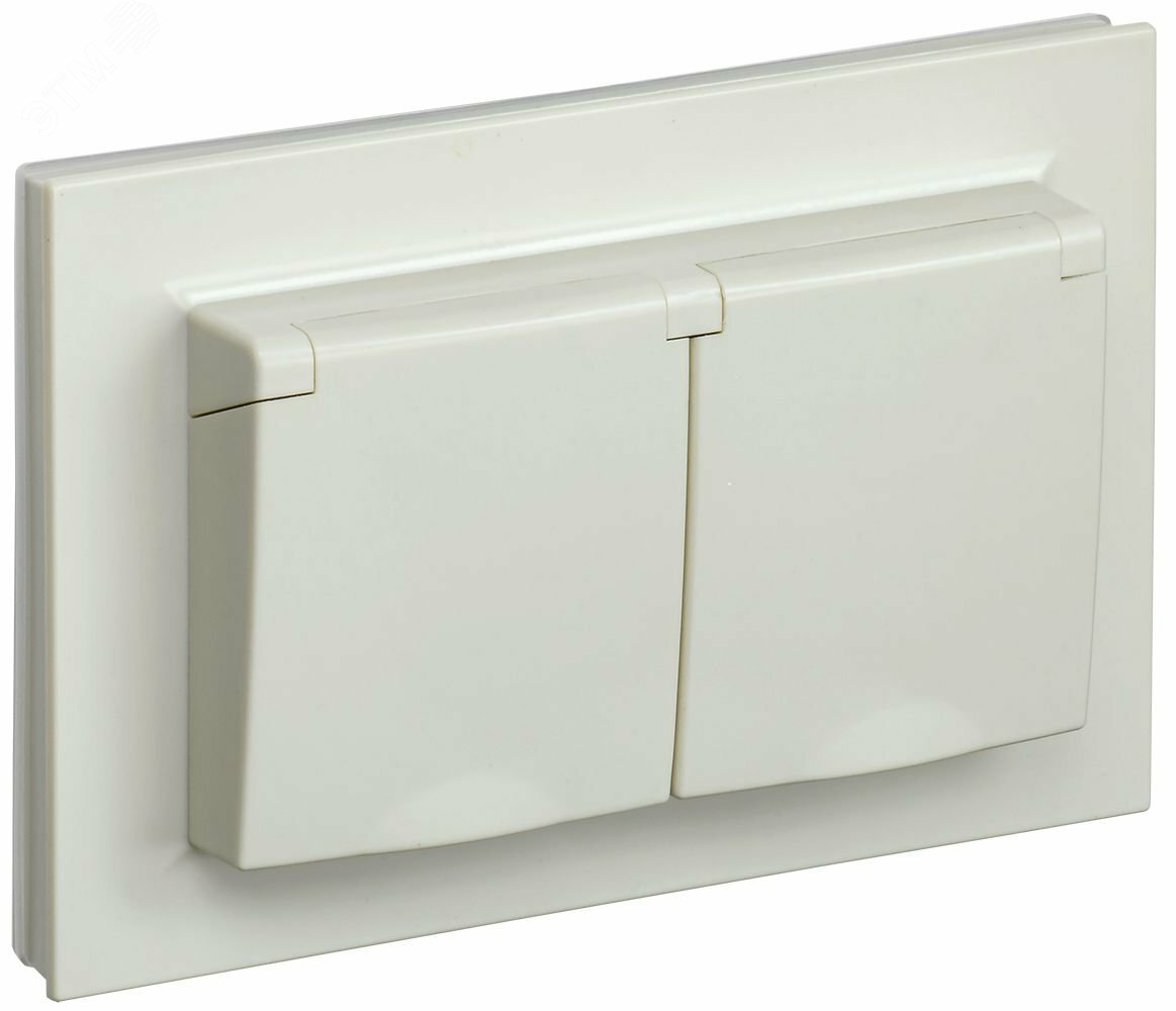 BRITE Розетка двойная с заземлением с защитными шторками и крышкой 16А в сборе IP44 РСбш12-3-44-БрКр бежевый купить в Казани