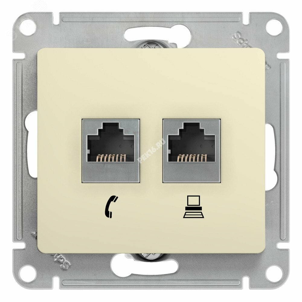 GLOSSA Розетка телефон/компьютер RJ11+RJ45 категория 5е в рамку бежевая купить в Казани