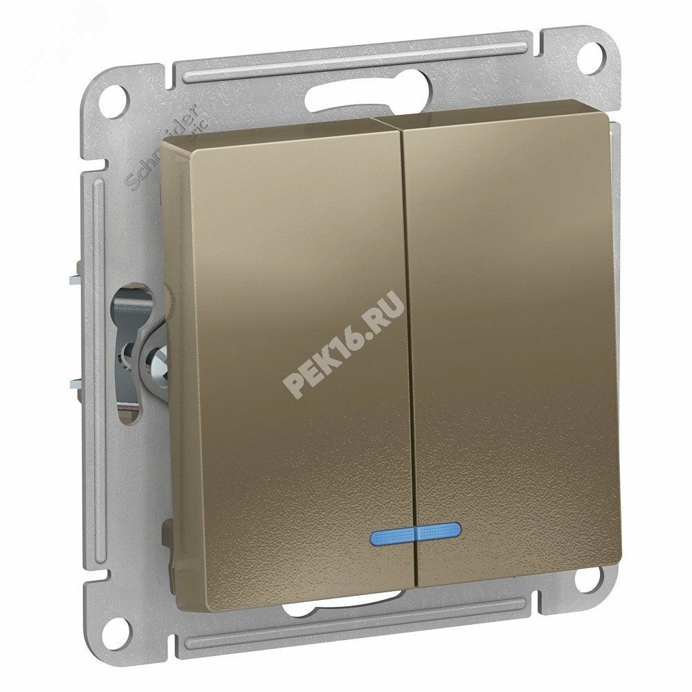 Выключатель двухклавишный ATLASDESIGN с подсветкой схема 5а 10АХ механизм шампань купить в Казани