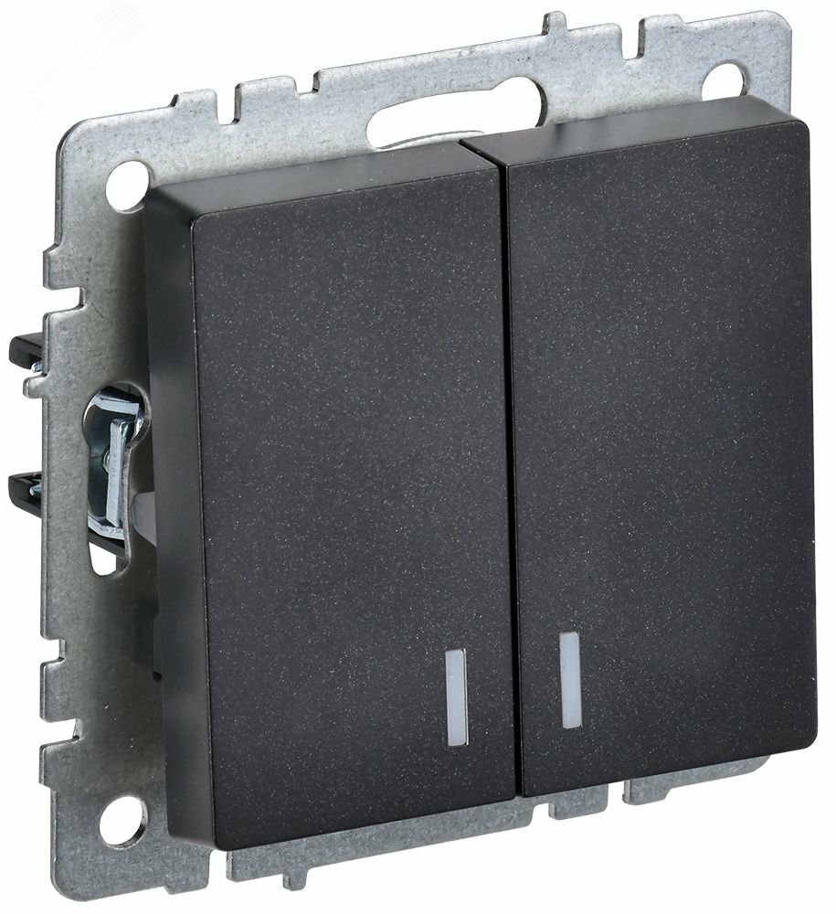 BRITE Выключатель двухклавишный с индикацией 10А ВС10-2-1-БрЧ черный купить в Казани