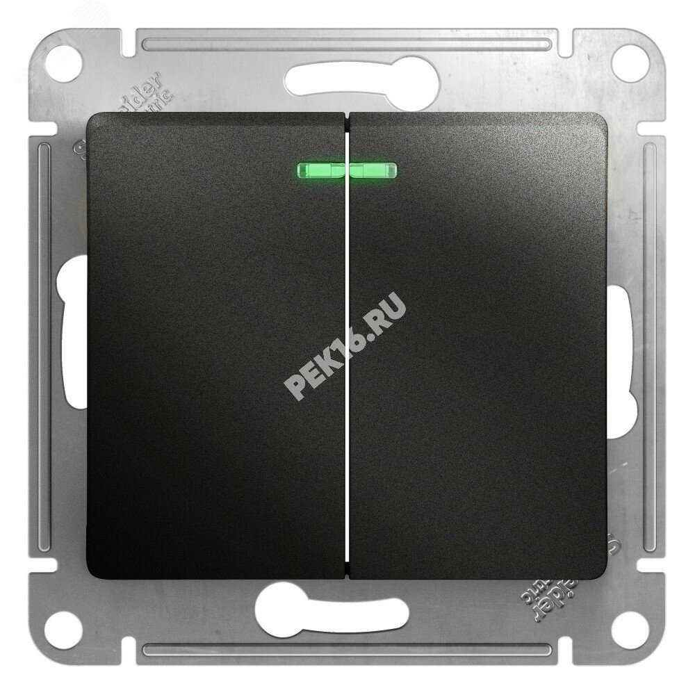 GLOSSA Выключатель двухклавишный с подсветкой схема 5а антрацит в рамку купить в Казани