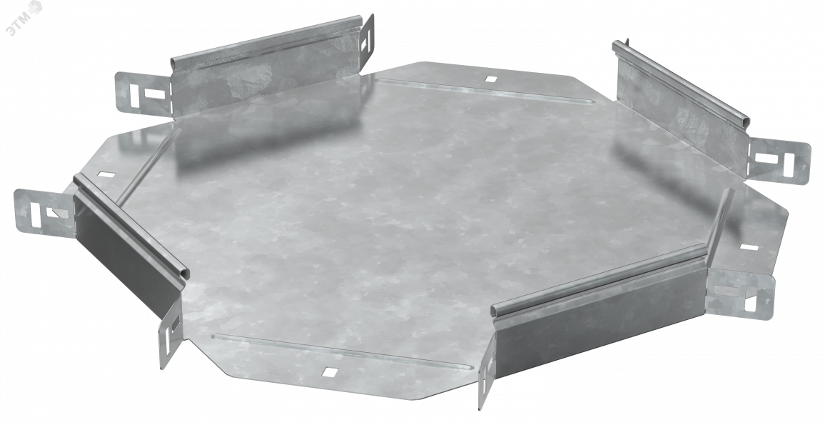 Крестовина предназначен для организации X-образного разветвления кабельной трассы в горизонтальной плоскости. Стыковка аксессуара с лотком осуществляется за счёт телескопического соединителя. Подходит для всех типов листовых лотков серии ESCA. Крышка на аксессуар заказывается отдельно. Аксессуар изготовлен из стали оцинкованной методом горячего погружения (защитный слой цинка не менее 55 мкм).