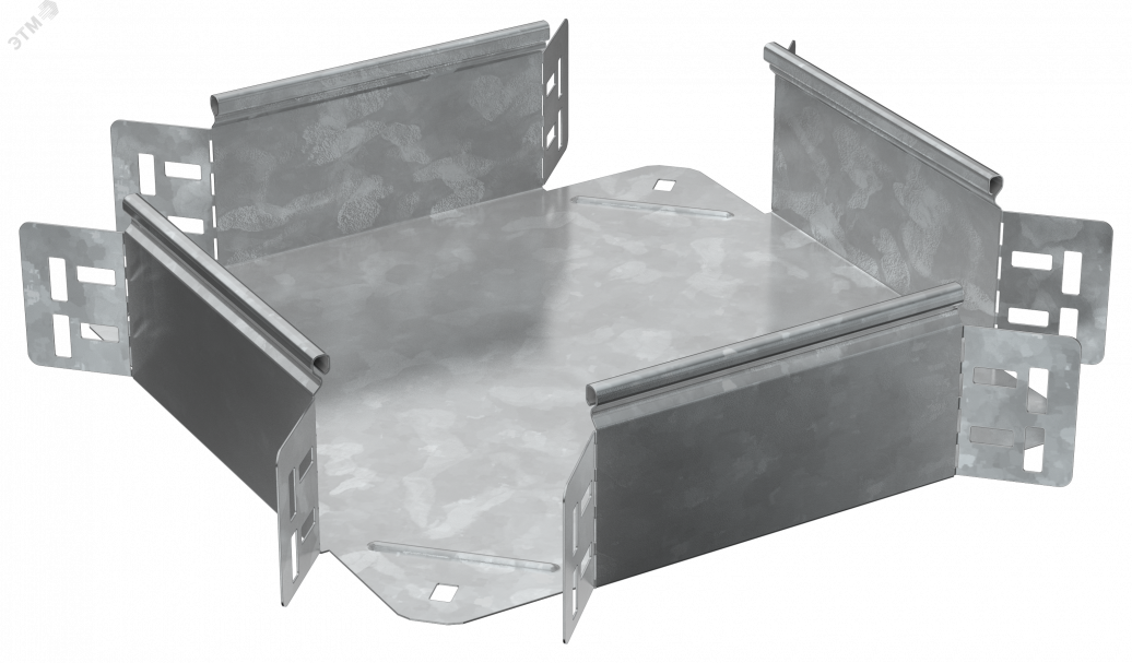 Крестовина предназначен для организации X-образного разветвления кабельной трассы в горизонтальной плоскости. Стыковка аксессуара с лотком осуществляется за счёт телескопического соединителя. Подходит для всех типов листовых лотков серии ESCA. Крышка на аксессуар заказывается отдельно. Аксессуар изготовлен из стали оцинкованной методом горячего погружения (защитный слой цинка не менее 55 мкм).