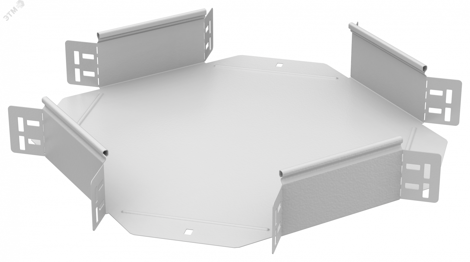 Крестовина предназначена для организации X-образного разветвления кабельной трассы в горизонтальной плоскости. Стыковка аксессуара с лотком осуществляется за счёт телескопического соединителя. Подходит для всех типов листовых лотков серии ESCA. Крышка на аксессуар заказывается отдельно. Аксессуар изготовлен из стали оцинкованной методом Сендзимира (защитный слой цинка не менее 5-10 мкм).