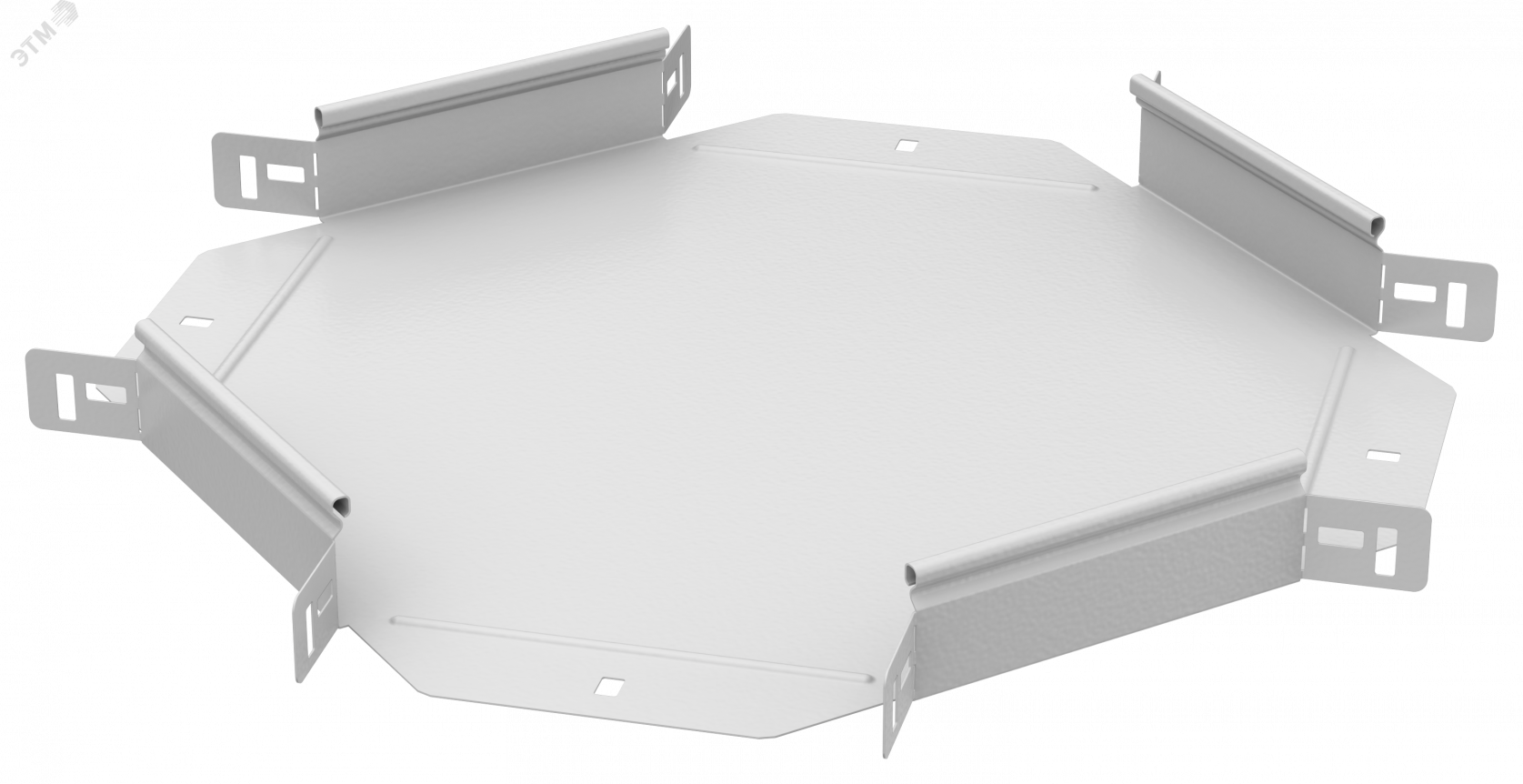 Крестовина предназначена для организации X-образного разветвления кабельной трассы в горизонтальной плоскости. Стыковка аксессуара с лотком осуществляется за счёт телескопического соединителя. Подходит для всех типов листовых лотков серии ESCA. Крышка на аксессуар заказывается отдельно. Аксессуар изготовлен из стали оцинкованной методом Сендзимира (защитный слой цинка не менее 5-10 мкм).