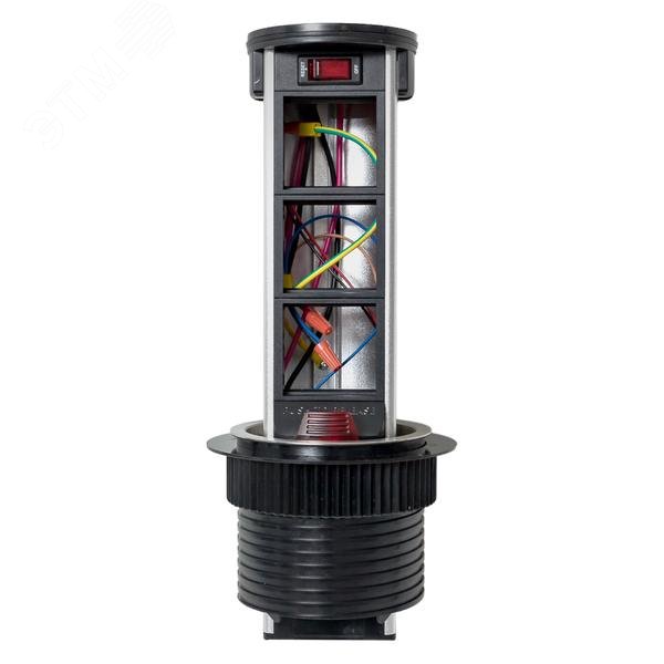 Встраиваемая мини-колонна с беспроводной зарядкой 15 Вт, 6 модулей C-Line. Встраиваемая мини-колонна с беспроводной зарядкой – это изделие цилиндрической формы с ручным выдвижным механизмом, предназначенное для установки ЭУИ стандарта 45х45. Верхняя крышка мини-колонны оснащена беспроводной зарядкой для электронных девайсов. Беспроводное зарядное устройство считывает данные с контроллера питания подключенного девайса и подбирает оптимальные и безопасные выходные параметры тока и напряжения. Изделие поставляется в комплекте с сетевым кабелем питания (2 метра). В нижней крышке колонны предусмотрены 2 дополнительных кабельных ввода. Монтаж производится в предварительно подготовленное отверстие диаметром ?95-100 мм. Допустимая толщина поверхности стола 10-45 мм.