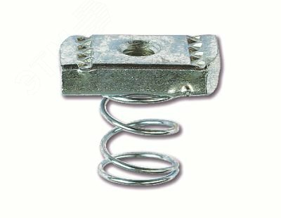 Гайки входят в состав системы крепежных элементов »M5 Combitech». Это изделие с резьбовым отверстием, которое применяется для соединения с болтами, винтами, а также шпильками. При этом сами гайки могут иметь различную форму. Отличительная особенность гаек производства ДКС — высокая прочность, надежность фиксации и устойчивость к коррозии. Гайки »M5 Combitech» могут применяться для сборки всех видов металлических кабеленесущих систем ДКС. Гайка с пружиной для подвешивания профиля М6х40 используется для крепления консолей к С-образным профилям, а также траверсам и подвесам на их основе. Гайка совместима с профилями типоразмера 41х41.