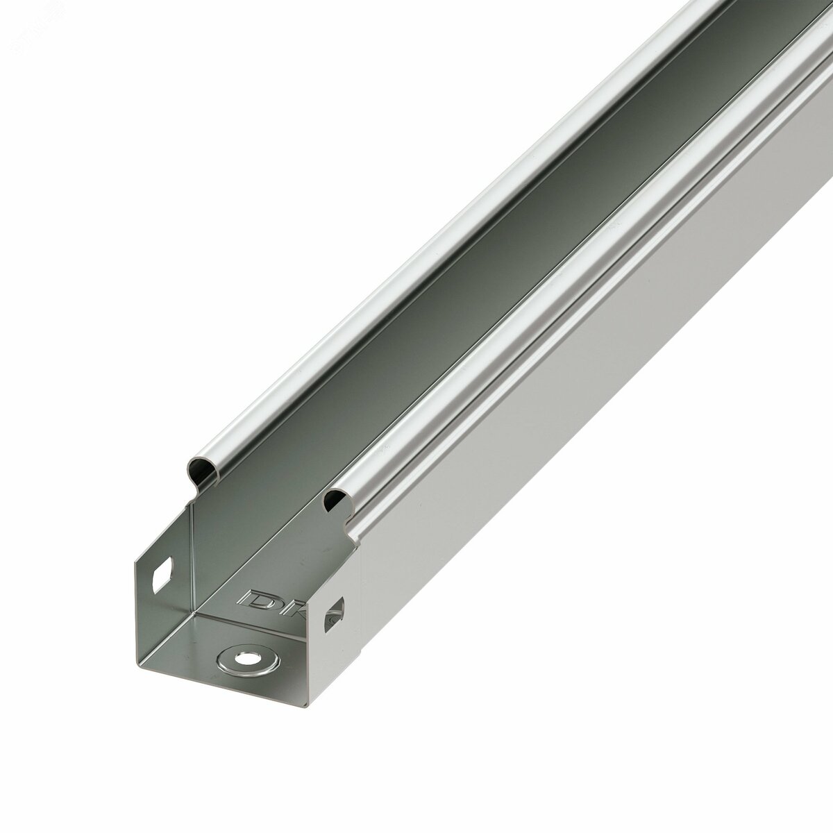 Неперфорированные листовые лотки ДКС применяются для прокладки кабеля как в помещении, так и на открытом воздухе. Лотки отличаются высокой несущей способностью — подформовка, производимая при производстве этой продукции, создает дополнительное ребро жесткости, что увеличивает несущую способность системы до 54%. При применении крышки и уплотнителей может достигаться степень пыле- и влагозащиты до IP44. Метод соединения »мама-папа» применяемый для системы, существенно сокращает время монтажа и создает непрерывный контур. Конструктив листовых лотков ДКС предупреждает повреждение кабеля при прокладке. Толщина стали — 0,7 мм, высота лотка — 50 мм, ширина — 50 мм, длина — 3000 мм. Полезное сечение — 2500 мм. Исполнение — »сталь, оцинкованная по методу Сендзимира».