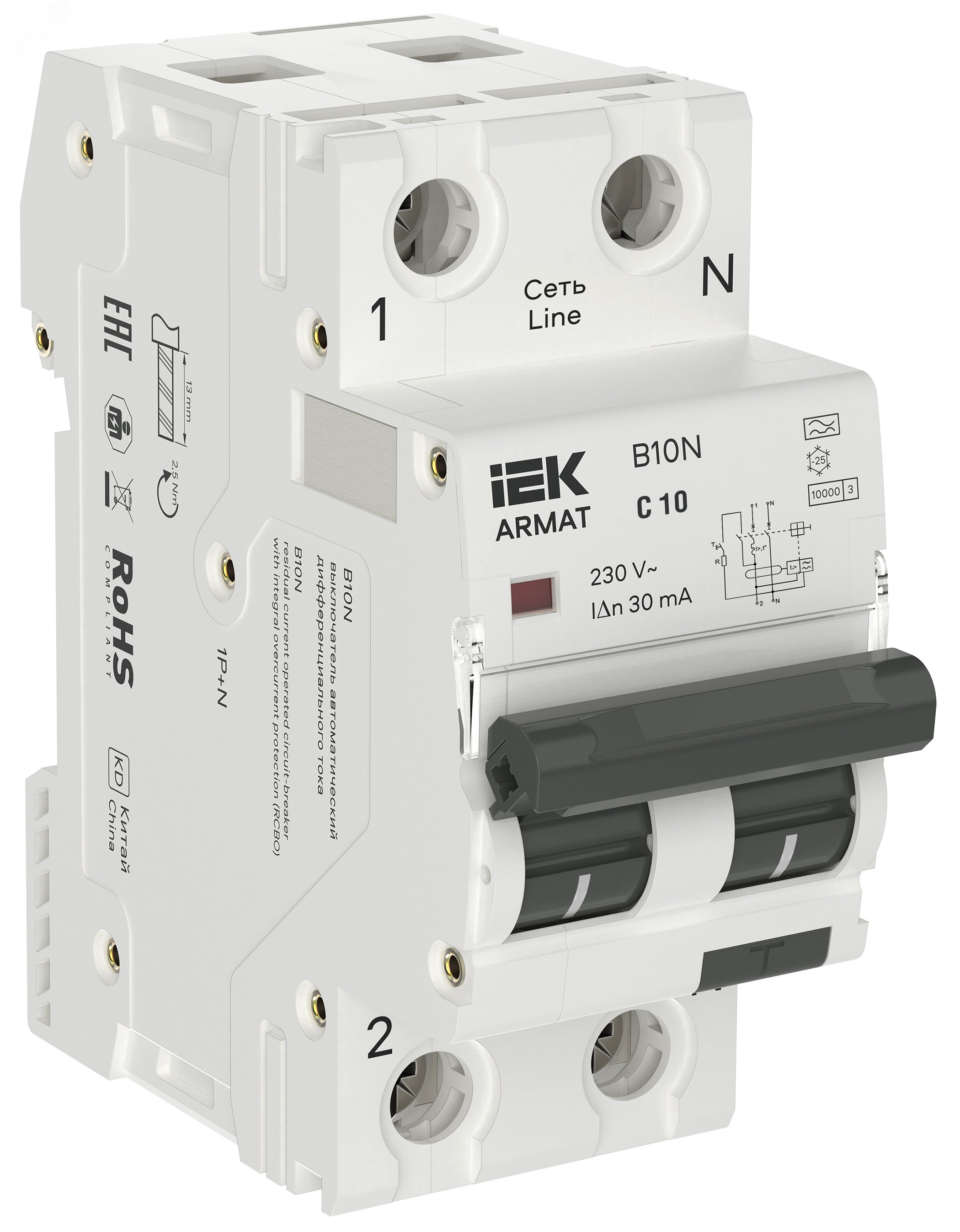 ARMAT Автоматический выключатель дифференциального тока B10N 1P+NP C10 30мА тип A (36мм) IEK купить в Казани
