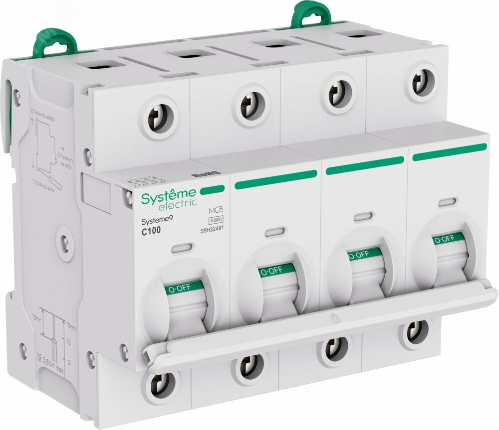 Автоматический выключатель (АВ) 27мм C 100A 4P 10 kA 400В Systeme9 (S9H32491) от Systeme Electric — Номинальный ток, А: 100, Характеристика эл.магнитного расцепителя: C, Номинальная отключающая способность, кА (AC) (IEC/EN 60898): 10. Цена от 11 412.44i за шт.