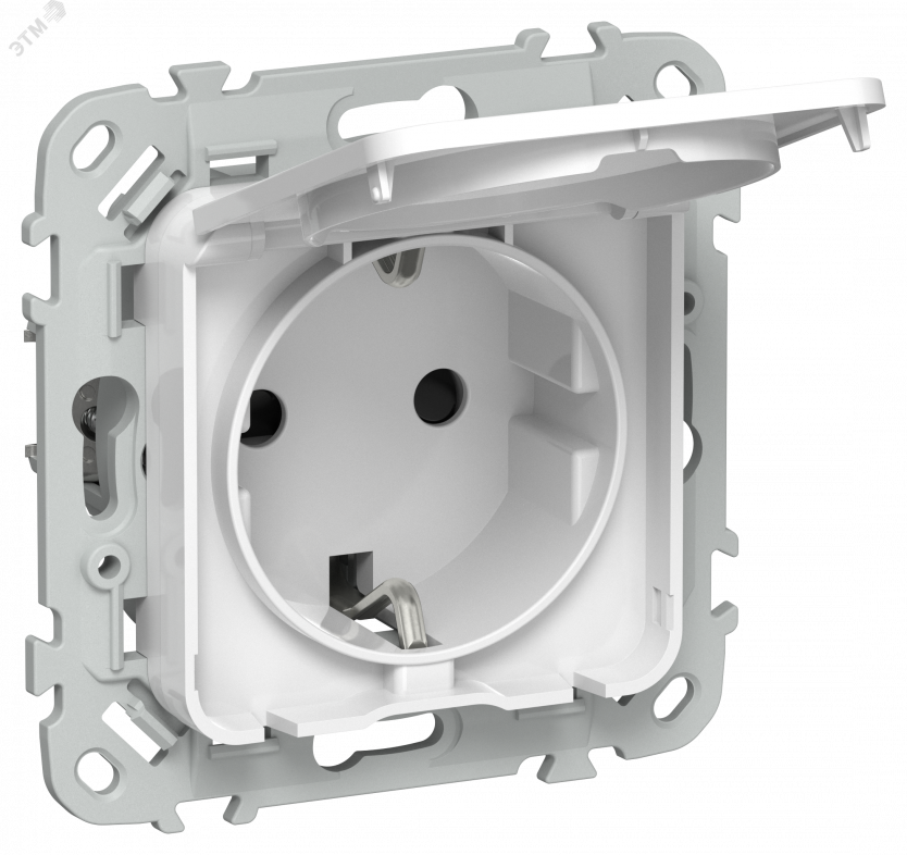FLITE Розетка с заземлением с защитными шторками и крышкой безвинтовое крепление 16А IP44 РСшкр11-1-44-ФлБ белый IEK купить в Казани
