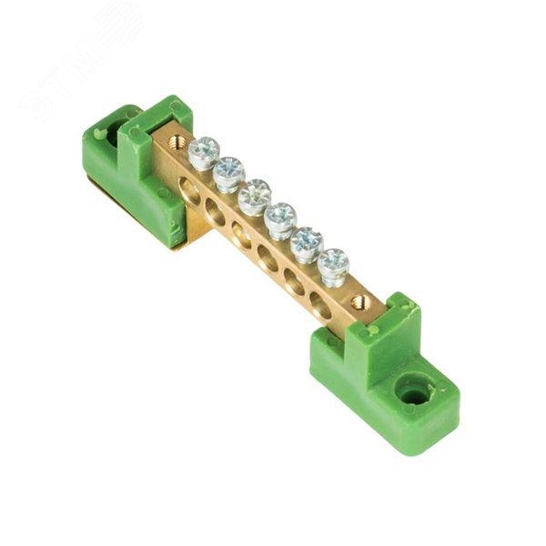 Шина 0 PE 6×9мм 6 отверстий латунь с контактной пластиной 2 зелёных угловых изолятора PROxima купить в Казани