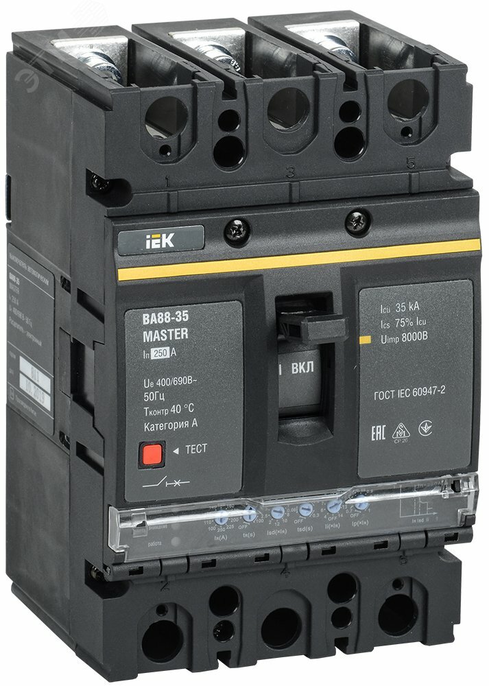 Автоматический выключатель ВА88-35 3Р 250А 35кА MASTER с электрон. расц. IEK (SVA31-3-0250-02) от IEK — Количество силовых полюсов: 3, Номинальная отключающая способность, кА (AC) (IEC/EN 60898): 35, Напряжение, В: 380/690. Цена от 18 236.24i за шт.
