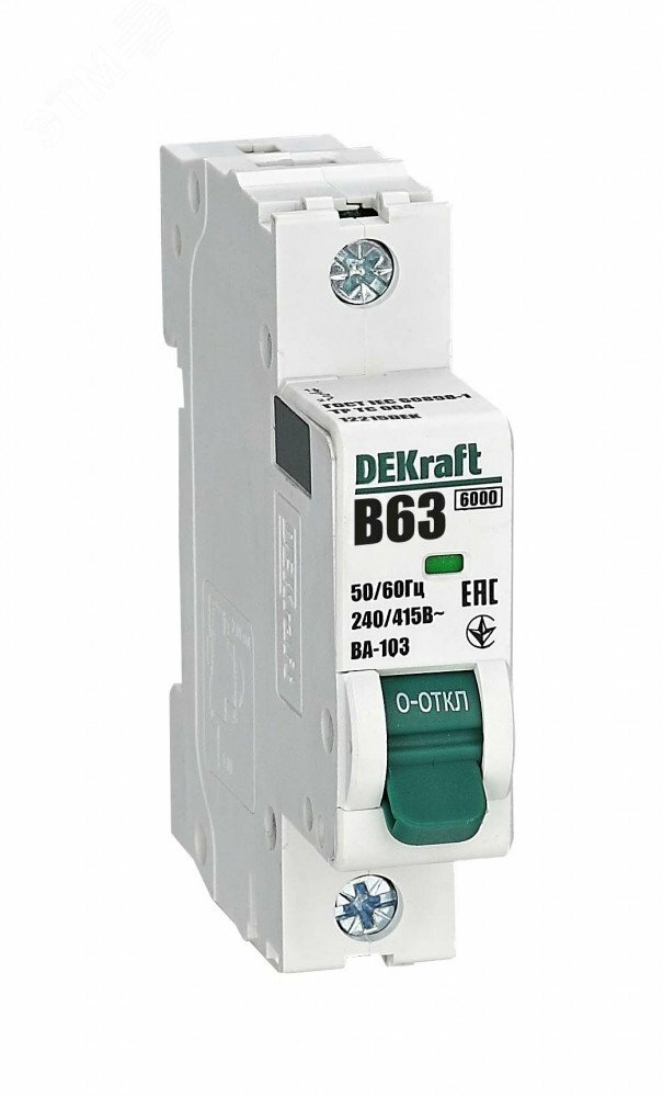 Выключатель автоматический 1Р 63А х-ка B ВА-103 6кА (12215DEK) от Dekraft — Количество силовых полюсов: 1, Характеристика эл.магнитного расцепителя: B, Номинальная отключающая способность, кА (AC) (IEC/EN 60898): 6. Цена от 419.20i за шт.