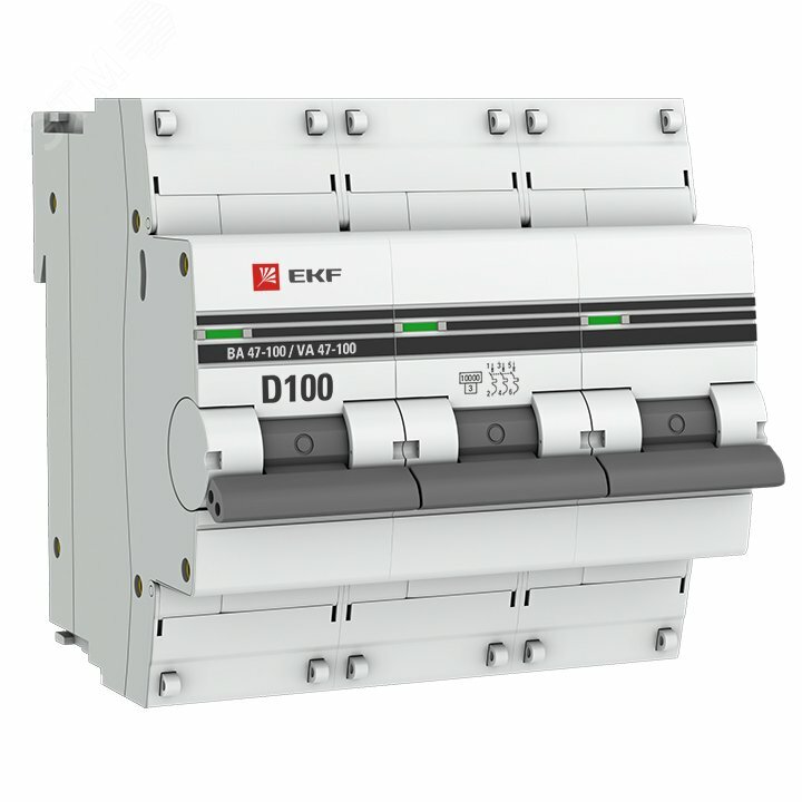 Выключатель автоматический трехполюсный 100А D ВА47-100 10кА EKF PROxima (mcb47100-3-100D-pro) от EKF — Номинальный ток, А: 100, Количество силовых полюсов: 3, Характеристика эл.магнитного расцепителя: D. Цена от 2 876.77i за шт.