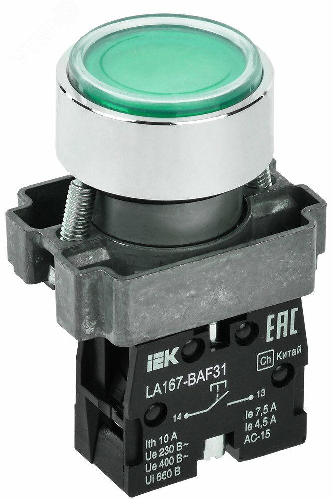 Кнопка LA167-BAF31 d=22мм 1з зеленая IEK купить в Казани