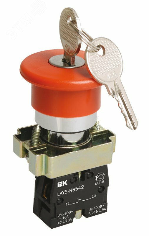 Кнопка красная с ключом LAY5-BS142 Гриб 22мм 240В купить в Казани