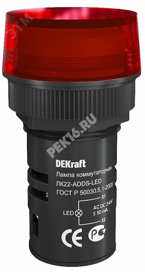 Лампа сигнальная ADDS серии ЛК-22 DEKraft, светодиодная, красная, круглая, номинальное напряжение 24 В пер./пост.тока, установка — на панели или двери, степень защиты — IP54. Лампы сигнальные предназначены для индикации состояния электрических цепей и коммутационных аппаратов. Использование в лампах светодиодных матриц (LED) снижает потребление электроэнергии. Низкая чувствительность к колебаниям напряжения позволяет использовать их в электрических цепях с нестабильным напряжением.
