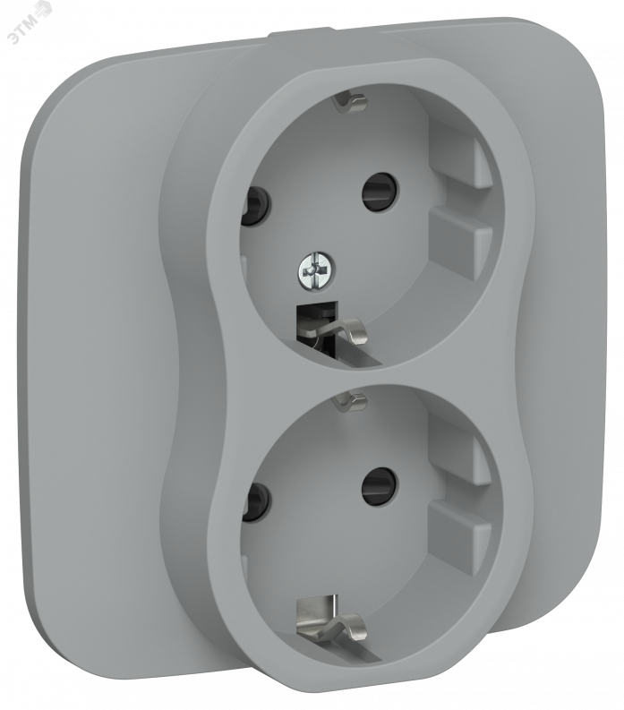 FLITE Розетка 2-местная с заземлением с защитными шторками безвинтовое крепление 16А в сборе РСш12-1-А-ФлС серый IEK купить в Казани