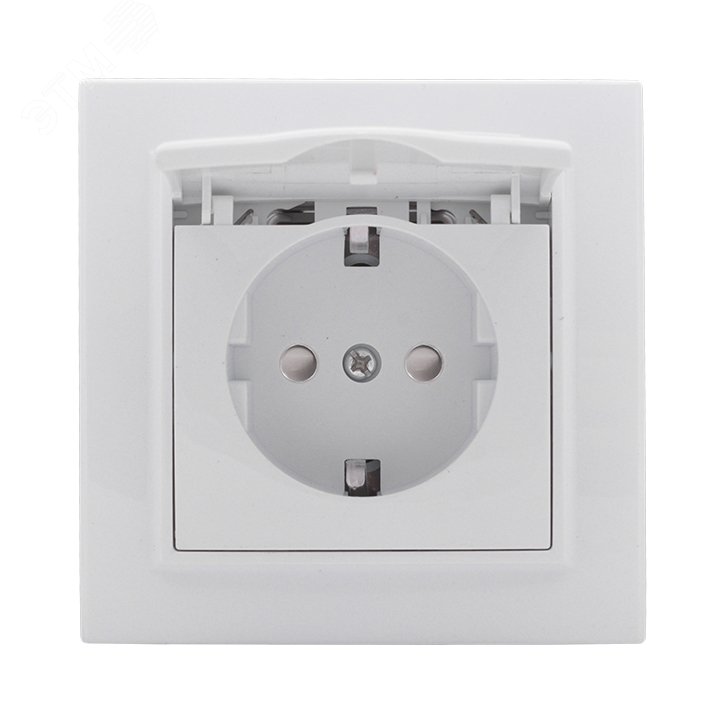 Розетка Минск 1-местная СП с заземлением и крышкой 16А белая защитные шторки купить в Казани