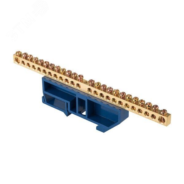 Шина 0 N 6х9мм 24 отверстия латунь синий изолятор на DIN-рейку PROxima купить в Казани