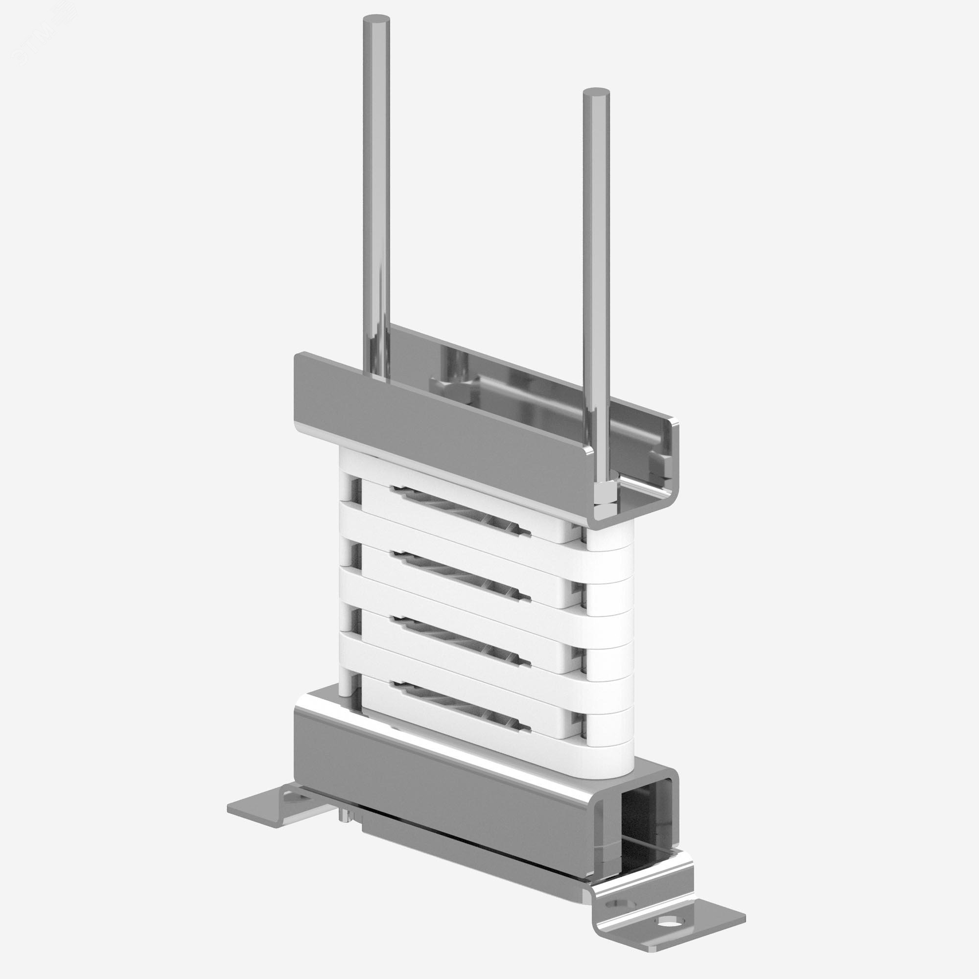Держатель гибкой шины 40-63мм. Позволяет зафиксировать до 8 параллельно проложенных шин для обеспечения стойкости к токам короткого замыкания. Обеспечивает необходимое расстояние между шинами для оптимального охлаждения,