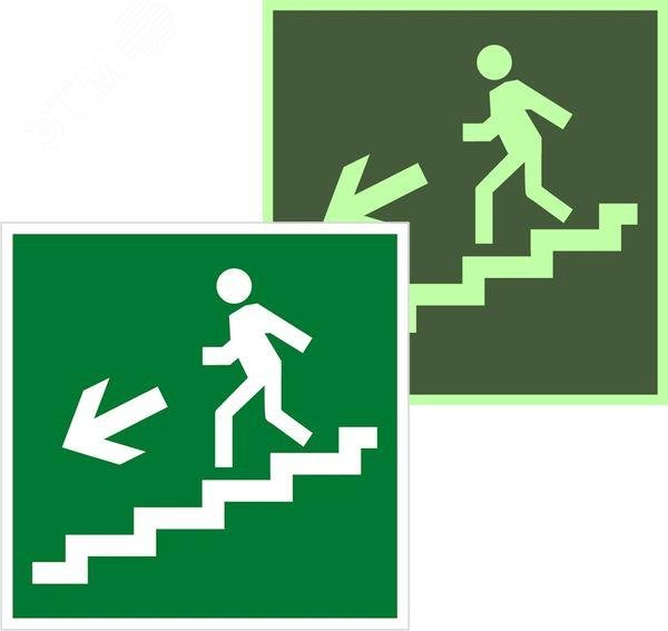 Знак эвакуационный E 14 »Направление к эвакуационному выходу по лестнице вниз налево» 200х200 мм, пленка самоклеящаяся с фотолюминесцентным покрытием ГОСТ Р 12.4.026-2015 купить в Казани