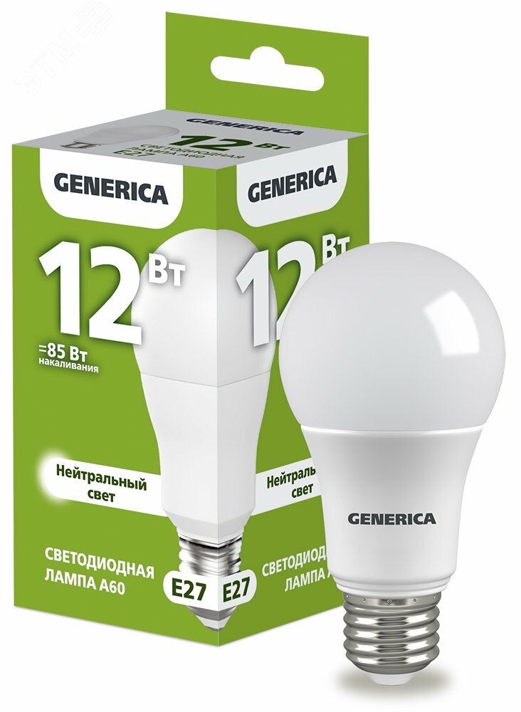 Лампа светодиодная A60 груша 12Вт 230В 4000К E27 GENERICA (LL-A60-12-230-40-E27-G) от IEK — Тип цоколя: E27, Мощность, Вт: 12, Напряжение, В: 220. Цена от 54.86i за шт.
