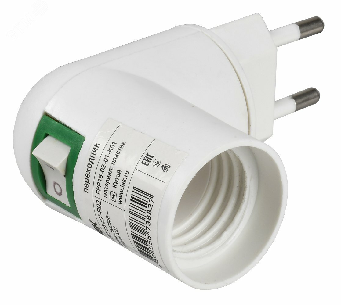 Переходник ПР7/16-27-R02 вилка 220В-патрон Е27 пластик белый купить в Казани